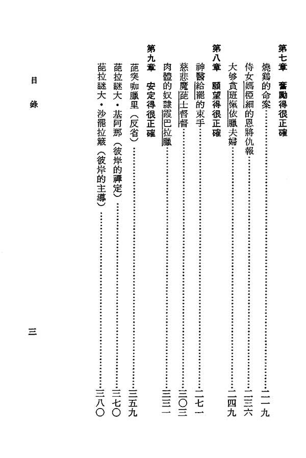 慈悲不是空洞、抽象的,慈悲是從善止惡的偉大力量,它是最偉大的神通。所謂六通中的「漏盡通」,就是人經「離執」、「去執」而到達「無執」的境界後,始能發露的,那就是純粹無雜的慈悲心所發露的力量。到達這個境界,就稱爲「尼爾罷阿拿」(湼槃)。「尼爾罷阿拿」,是寂靜的意思。寂靜,就是心不發露不滿、恐懼、嫉妒、憤恨、貪婪、不知足等,由我執引發的黑暗想念的意思。當人的黑暗想念愈少,由黑暗想念發露的欺騙、任性、虛榮、奢侈、傲慢、誇耀、不負責、逃避、報復、偷竊等黑暗行爲,隨着也就愈少,而其我執也就隨着愈微弱。我執越微弱,人便會離執,進而去執,而終於達到完全無執的境界。